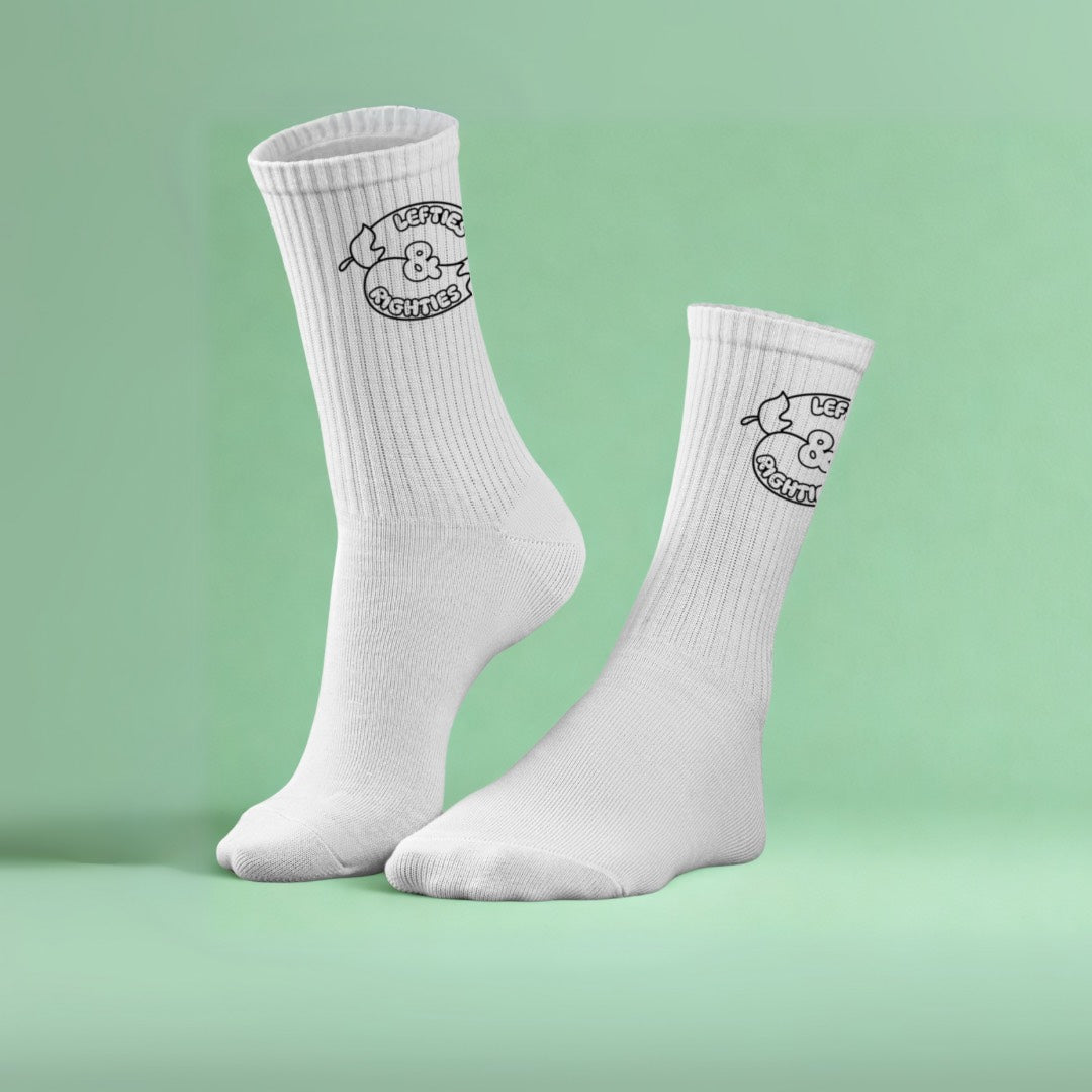 Of je ze nu draagt op je linker- of rechtervoet, je krijgt altijd een paar sokken met ons stijlvolle Lefties & Righties logo er op. Perfect om je outfit (of je creatieve sokken-gebruik) een boost te geven!
